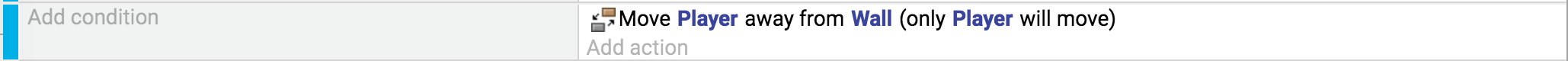 Using "Separate objects" is a good way to ensure that your objects can't move into other solid objects. This action checks collisions between objects. For example, if the game object "player" is touching a wall, this action, when used with the condition called "Collision," will trigger damages to the player.